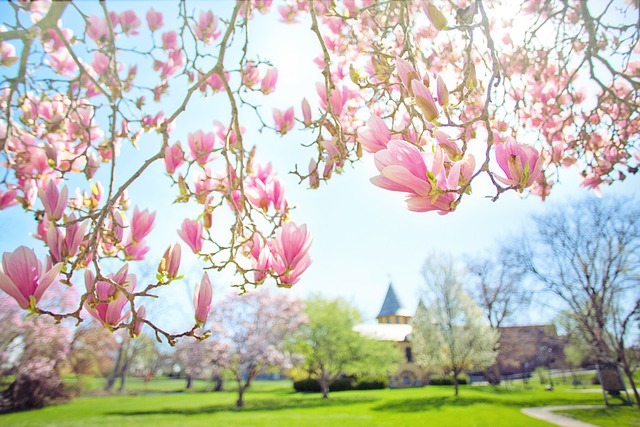 - 호수를 따라 벚꽃과 목련이 함께 피어 아름다운 봄 풍경을 연출합니다.