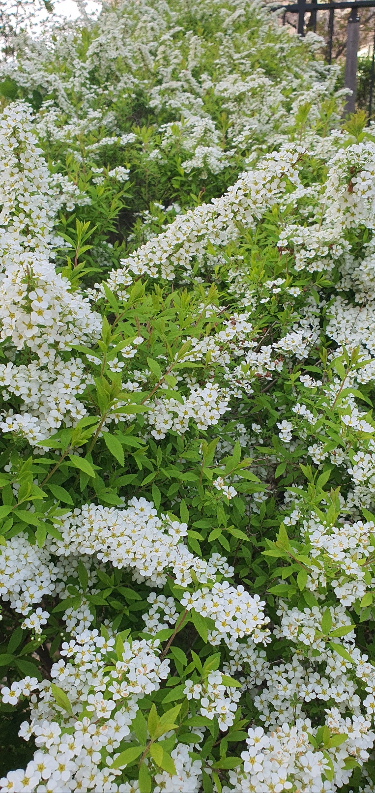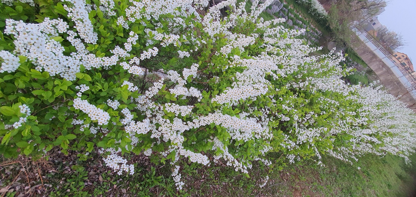 꽃말은 헛수고,하찮은 일, 노련하다. 인데 조팝나무꽃이 만개하면 가지마다 주렁주렁 매달린 탐스로운 꽃다발 탓에 얇은 가지들이 한껏 휘어지는데 , 그 모습이 보릿고개에 힘겨웠던 조상들 눈에는 동그란 곡식 이삭 같아서 조팝이라 불렀다고 전해진다.